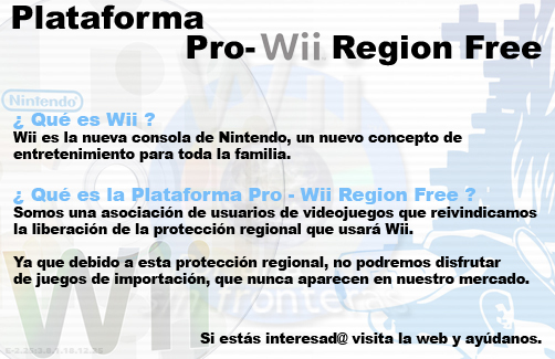 A continuación os dejamos los respectivos de lo que representará la PLATAFORMA Pro Wii. Capaz de acoger todas las criticas con sus consecuentes propuestas, para que se pueda lograr el cometido. Pinchas sobre los banners, para verlos a mayor resolución.
